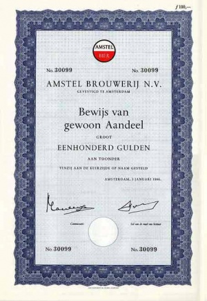 In 1892 werd de naam omgezet in een naamloze vennootschap. In 1915 was de productie van Amstel vertwintigvoudigd en in 1926 nam Amstel een derde van de totale Nederlandse bierexport voor zijn rekening. In 1941 nam Amstel, samen met Heineken, het kapitaal van de Amsterdamse brouwerij Van Vollenhovens Bierbrouwerij aan de Hoogte Kadijk over. Deze laatste brouwerij werd 1961 gesloten.