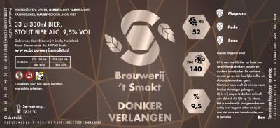 Donker Verlangen is een Russian Imperial Stout van Brouwerij 't Smakt. Dit volle bier is rijk van smaak, heeft tonen van koffie in zich en bevat 9,2% alcohol.