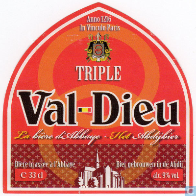 Val Dieu Tripel is een Tripel met 9,0% alcohol. Val Dieu Tripel wordt gebrouwen door Brasserie de l'abbaye du Val-Dieu in Aubel.