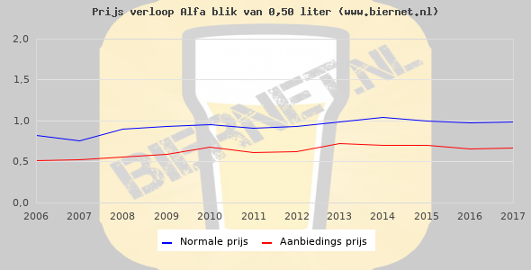 De gemiddelde prijs van een blik van 0,50 liter van Alfa Edel Pils is €1,31 (€2,62 per liter). De gemiddelde prijs van Alfa Edel Pils in de winkel is €2,58 per liter.