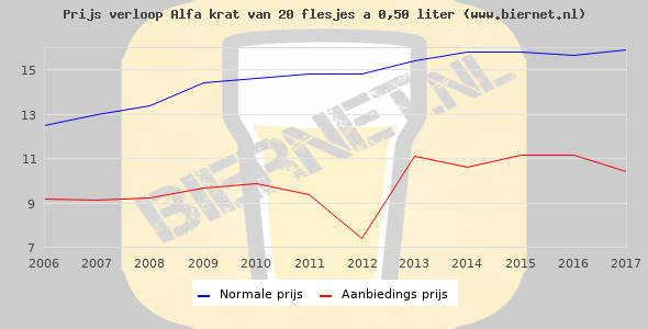 Hieronder staan de standaard prijzen van een Alfa Edel Pils krat van 20 flesjes á 0,50 liter. Op dit moment zijn er 2 aanbiedingen van Alfa Edel Pils.