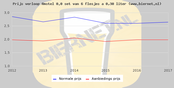 Hieronder staan de standaard prijzen van een Amstel 0.0 set van 6 flesjes á 0,30 liter. Op dit moment zijn er 2 aanbiedingen van Amstel 0.0.