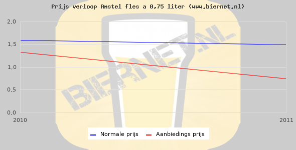 De gemiddelde prijs van een fles á 0,75 liter van Amstel Pilsener is niet bekend. De gemiddelde prijs van Amstel Pilsener in de winkel is niet bekend.