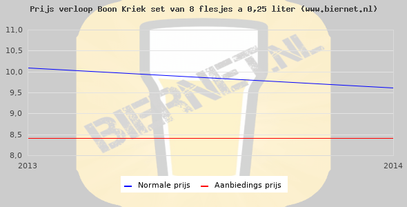 De gemiddelde prijs van een set van 8 flesjes á 0,25 liter van Boon Kriek is niet bekend. De gemiddelde prijs van Boon Kriek in de winkel is niet bekend.