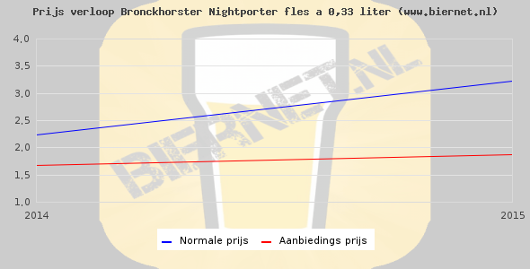De gemiddelde prijs van een fles á 0,33 liter van Bronckhorster Nightporter is niet bekend. De gemiddelde prijs van Bronckhorster Nightporter in de winkel is niet bekend.
