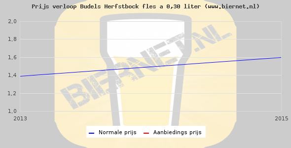 De gemiddelde prijs van een fles á 0,30 liter van Budels Herfstbock is €2,3 (€7,67 per liter). De gemiddelde prijs van Budels Herfstbock in de winkel is €7,17 per liter.