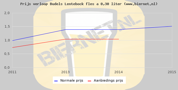 De gemiddelde prijs van een fles á 0,30 liter van Budels Lentebock is niet bekend. De gemiddelde prijs van Budels Lentebock in de winkel is niet bekend.