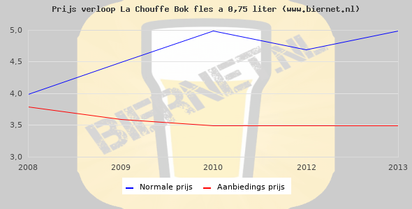 De gemiddelde prijs van een fles á 0,75 liter van Chouffe Bok is niet bekend. De gemiddelde prijs van Chouffe Bok in de winkel is niet bekend.