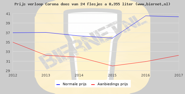 De gemiddelde prijs van een doos van 24 flesjes á 0,355 liter van Corona is niet bekend. De gemiddelde prijs van Corona in de winkel is niet bekend.