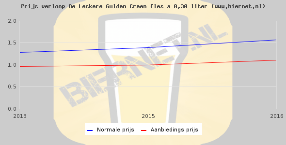De gemiddelde prijs van een fles á 0,33 liter van De Leckere Gulden Craen is niet bekend. De gemiddelde prijs van De Leckere Gulden Craen in de winkel is niet bekend.