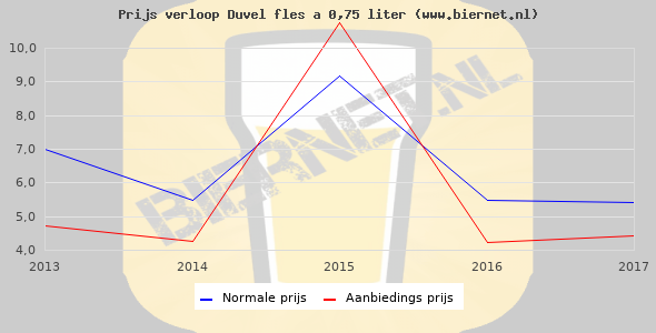 De gemiddelde prijs van een fles á 0,75 liter van Duvel is €6,46 (€8,61 per liter). De gemiddelde prijs van Duvel in de winkel is €6,64 per liter.