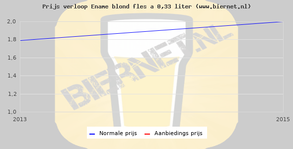 De gemiddelde prijs van een fles á 0,33 liter van Ename blond is €2,45 (€7,42 per liter). De gemiddelde prijs van Ename blond in de winkel is €7,42 per liter.