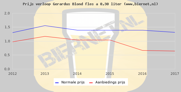 De gemiddelde prijs van een fles á 0,30 liter van Gerardus Blond is niet bekend. De gemiddelde prijs van Gerardus Blond in de winkel is niet bekend.