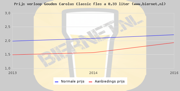 Hieronder staan de standaard prijzen van een Gouden Carolus Classic fles á 0,33 liter. Op dit moment zijn er geen aanbiedingen bekend van Gouden Carolus Classic.