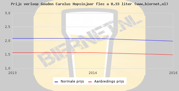 Hieronder staan de standaard prijzen van een Gouden Carolus Hopsinjoor fles á 0,33 liter. Op dit moment zijn er geen aanbiedingen bekend van Gouden Carolus Hopsinjoor.