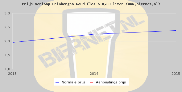 De gemiddelde prijs van een fles á 0,33 liter van Grimbergen Goud is niet bekend. De gemiddelde prijs van Grimbergen Goud in de winkel is niet bekend.