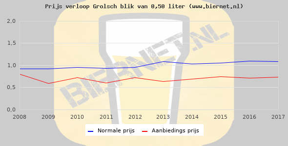 De gemiddelde prijs van een blik van 0,50 liter van Grolsch Premium Pilsner is €1,33 (€2,66 per liter). De gemiddelde prijs van Grolsch Premium Pilsner in de winkel is €2,81 per liter.