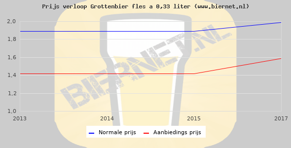 De gemiddelde prijs van een fles á 0,33 liter van Grottenbier is niet bekend. De gemiddelde prijs van Grottenbier in de winkel is niet bekend.