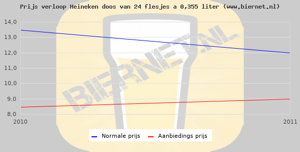 De gemiddelde prijs van een doos van 24 flesjes á 0,355 liter van Heineken Pilsener is niet bekend. De gemiddelde prijs van Heineken Pilsener in de winkel is niet bekend.