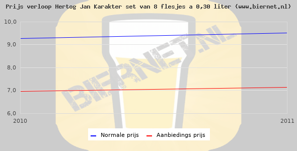 De gemiddelde prijs van een set van 8 flesjes á 0,30 liter van Hertog Jan Karakter is niet bekend. De gemiddelde prijs van Hertog Jan Karakter in de winkel is niet bekend.