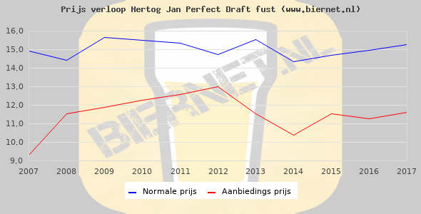 De gemiddelde prijs van een perfect Draft fust van Hertog Jan Pilsener is €19,49 (€3,25 per liter). De gemiddelde prijs van Hertog Jan Pilsener in de winkel is €3,03 per liter.