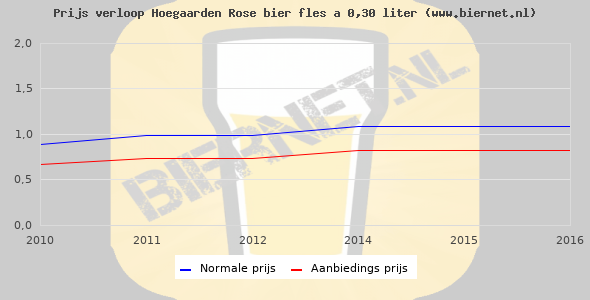 De gemiddelde prijs van een fles á 0,30 liter van Hoegaarden Rose bier is niet bekend. De gemiddelde prijs van Hoegaarden Rose bier in de winkel is niet bekend.