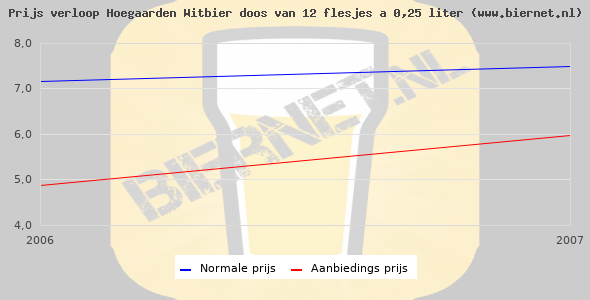 De gemiddelde prijs van een doos van 12 flesjes 0,25 liter van Hoegaarden Witbier is niet bekend. De gemiddelde prijs van Hoegaarden Witbier in de winkel is niet bekend.