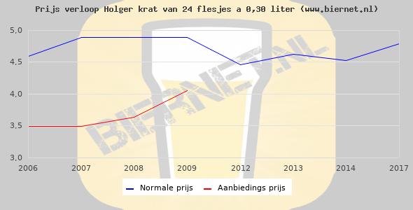 Hieronder staan de standaard prijzen van een Holger krat van 24 flesjes á 0,30 liter. Op dit moment zijn er geen aanbiedingen bekend van Holger.