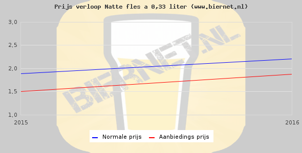 De gemiddelde prijs van een fles á 0,33 liter van IJ Natte is €3,04 (€9,21 per liter). De gemiddelde prijs van IJ Natte in de winkel is €8,64 per liter.
