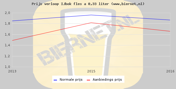 De gemiddelde prijs van een fles á 0,33 liter van IJbok is niet bekend. De gemiddelde prijs van IJbok in de winkel is niet bekend.