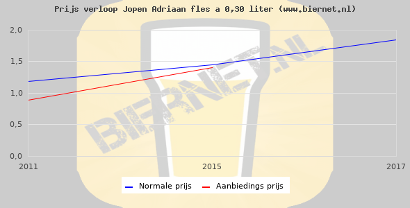De gemiddelde prijs van een fles á 0,30 liter van Jopen Adriaan Wit is niet bekend. De gemiddelde prijs van Jopen Adriaan Wit in de winkel is niet bekend.