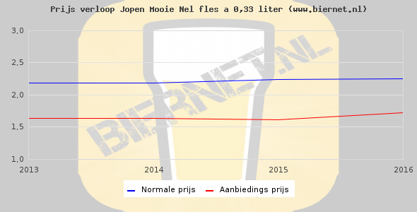 Hieronder staan de standaard prijzen van een Jopen Mooie Nel fles á 0,33 liter. Op dit moment zijn er 3 aanbiedingen van Jopen Mooie Nel.