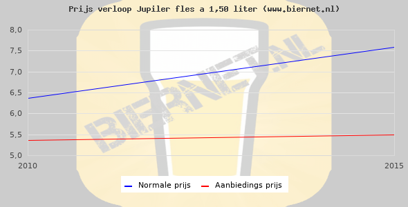 De gemiddelde prijs van een fles á 1,50 liter van Jupiler Pils is niet bekend. De gemiddelde prijs van Jupiler Pils in de winkel is niet bekend.