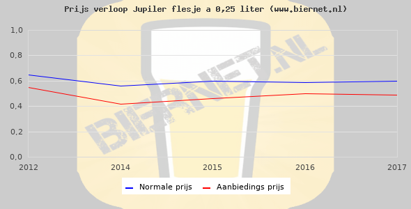 De gemiddelde prijs van een flesje á 0,25 liter van Jupiler Pils is €1,11 (€4,44 per liter). De gemiddelde prijs van Jupiler Pils in de winkel is €3,48 per liter.