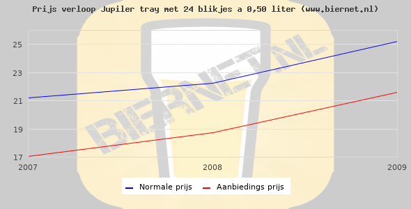 De gemiddelde prijs van een tray met 24 blikjes 0,50 liter van Jupiler Pils is niet bekend. De gemiddelde prijs van Jupiler Pils in de winkel is niet bekend.