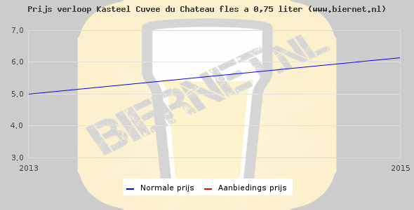 Hieronder staan de standaard prijzen van een Kasteel Cuvee Du Chateau fles á 0,75 liter. Op dit moment zijn er geen aanbiedingen bekend van Kasteel Cuvee Du Chateau.