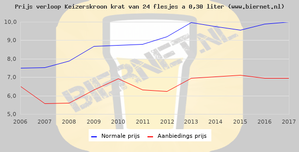 De gemiddelde prijs van een krat van 24 flesjes á 0,30 liter van Keizerskroon is niet bekend. De gemiddelde prijs van Keizerskroon in de winkel is niet bekend.