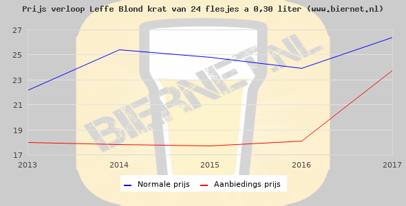 De gemiddelde prijs van een krat van 24 flesjes á 0,30 liter van Leffe Blond is €37,45 (€5,2 per liter). De gemiddelde prijs van Leffe Blond in de winkel is €4,59 per liter.