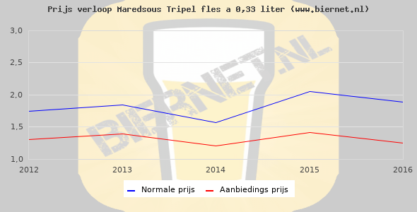 De gemiddelde prijs van een fles á 0,33 liter van Maredsous Tripel is €2,55 (€7,73 per liter). De gemiddelde prijs van Maredsous Tripel in de winkel is €8,56 per liter.