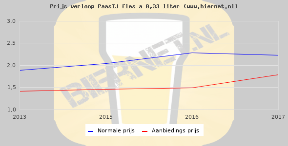 Hieronder staan de standaard prijzen van een PaasIJ fles á 0,33 liter. Op dit moment zijn er 2 aanbiedingen van PaasIJ.