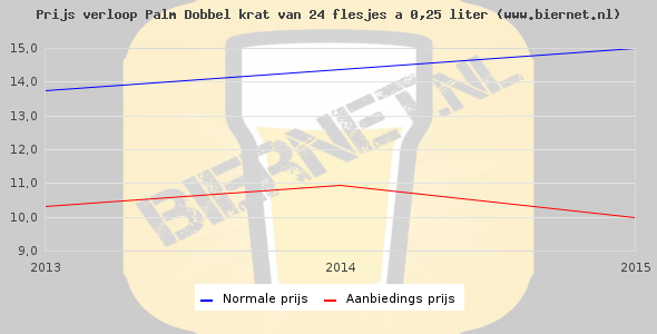 De gemiddelde prijs van een krat van 24 flesjes á 0,25 liter van Palm Dobbel is niet bekend. De gemiddelde prijs van Palm Dobbel in de winkel is niet bekend.