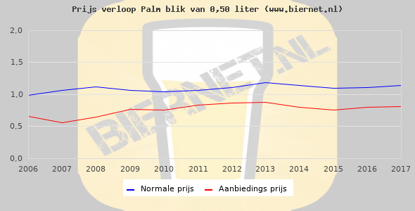 In een blik 50cl zit in totaal 0,50 liter. Op een blik 50cl Palm Spéciale zit €0,15 statiegeld. De prijzen op deze pagina zijn allemaal zonder statiegeld.