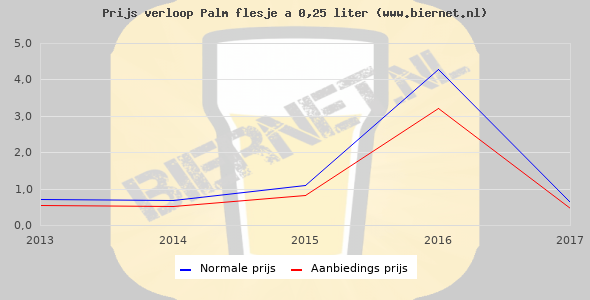 De gemiddelde prijs van een flesje á 0,25 liter van Palm Spéciale is €1,19 (€4,76 per liter). De gemiddelde prijs van Palm Spéciale in de winkel is €4,14 per liter.