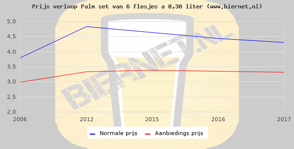 De gemiddelde prijs van een set van 6 flesjes á 0,30 liter van Palm Spéciale is niet bekend. De gemiddelde prijs van Palm Spéciale in de winkel is niet bekend.