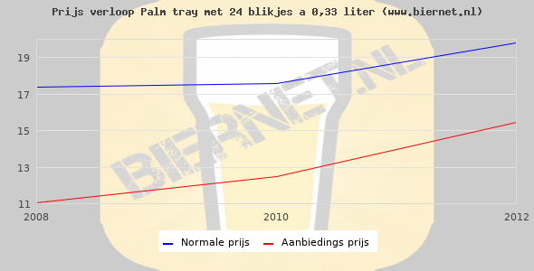 De gemiddelde prijs van een tray met 24 blikjes 0,33 liter van Palm Spéciale is niet bekend. De gemiddelde prijs van Palm Spéciale in de winkel is niet bekend.