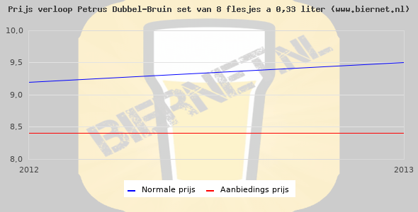 De gemiddelde prijs van een set van 8 flesjes á 0,33 liter van Petrus Dubbel is niet bekend. De gemiddelde prijs van Petrus Dubbel in de winkel is niet bekend.