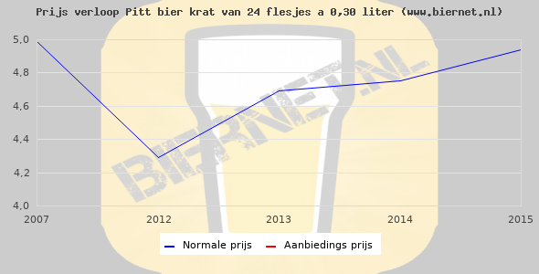 De gemiddelde prijs van een krat van 24 flesjes á 0,30 liter van Pitt bier is €5,59 (€0,78 per liter). De gemiddelde prijs van Pitt bier in de winkel is €1,12 per liter.