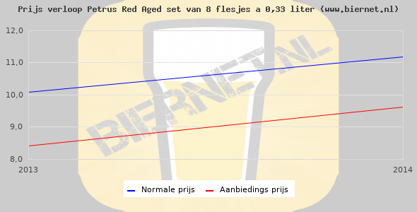 De gemiddelde prijs van een set van 8 flesjes á 0,33 liter van RED by Petrus is niet bekend. De gemiddelde prijs van RED by Petrus in de winkel is niet bekend.