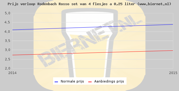 De gemiddelde prijs van een set van 4 flesjes á 0,25 liter van Rodenbach Rosso is niet bekend. De gemiddelde prijs van Rodenbach Rosso in de winkel is niet bekend.