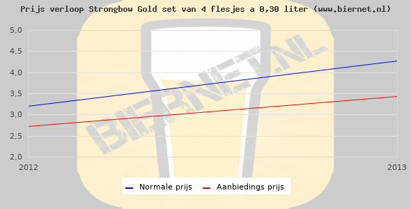 De gemiddelde prijs van een set van 4 flesjes á 0,30 liter van Strongbow Gold is niet bekend. De gemiddelde prijs van Strongbow Gold in de winkel is niet bekend.